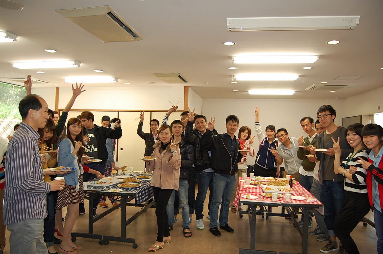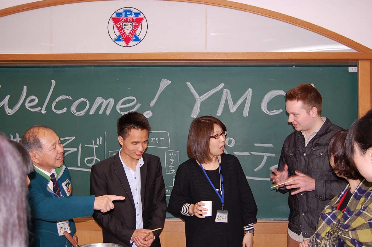 2013年4月26日(週五),福岡YMCA七隈校為歡迎16名新同學舉辦了歡迎會。除了老師、同學、講師、行政人員外,還有日語會話志工參加。大家有的嘗試作章魚燒,有的和各國人交談,以自己的方式愉快度過了歡迎會。